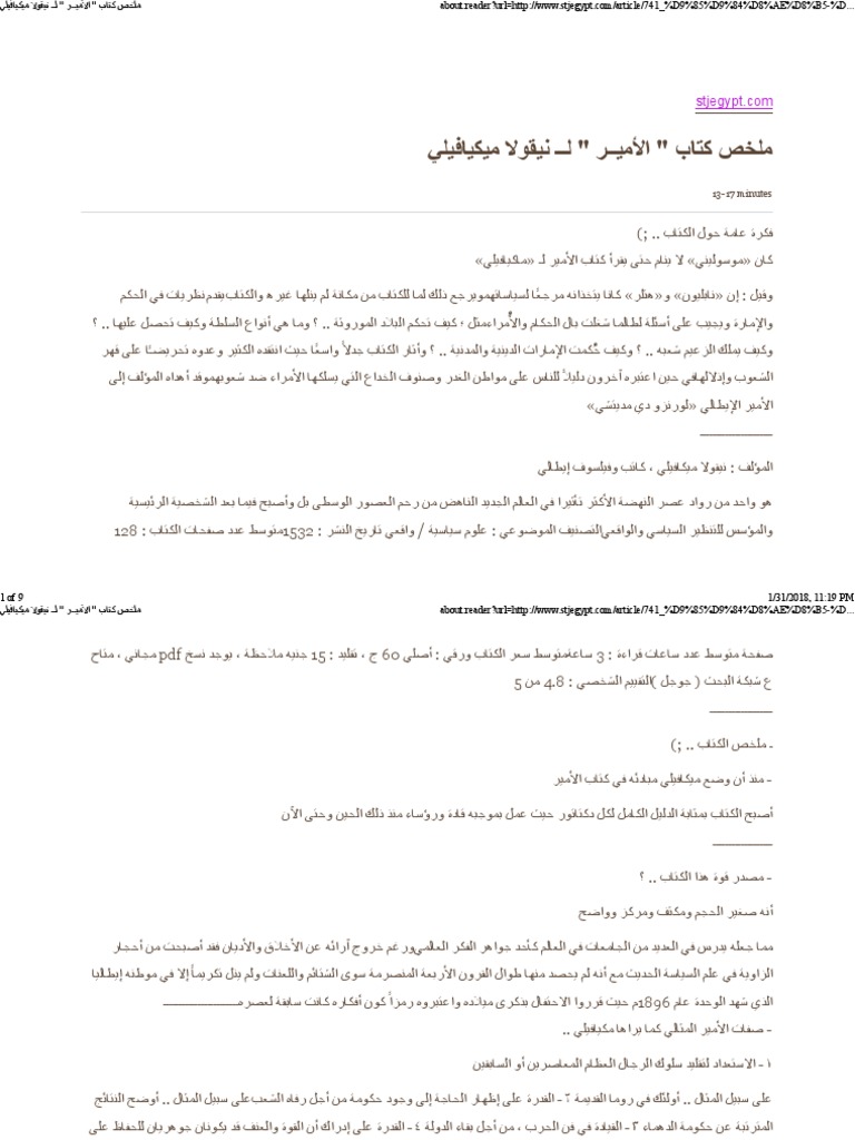 ملخص كتاب الامير ميكافيلي Pdf