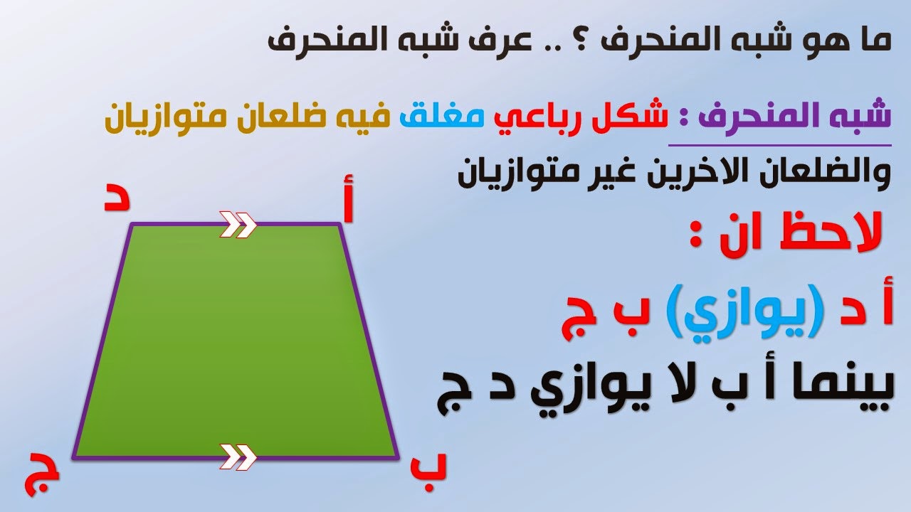 درس مساحة المثلث وشبه المنحرف للصف الأول المتوسط بستان السعودية