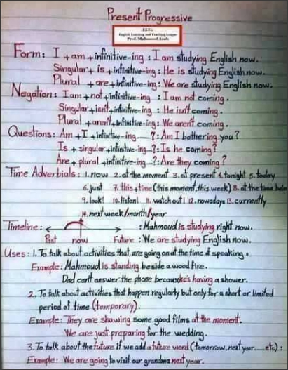 ملخص الازمنة والقواعد فى ملف مكتوب بخط اليد ملف Pdf