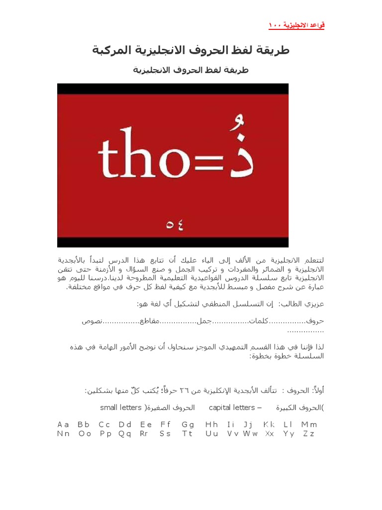 طريقة لفظ الحروف الانجليزية المركبة Pdf