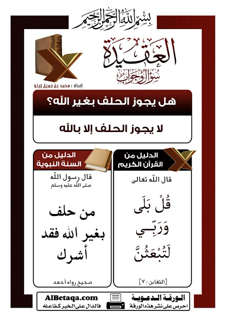 العقيدة سؤال وجواب هل يجوز الحلف بغير الله موقع البطاقة الدعوي