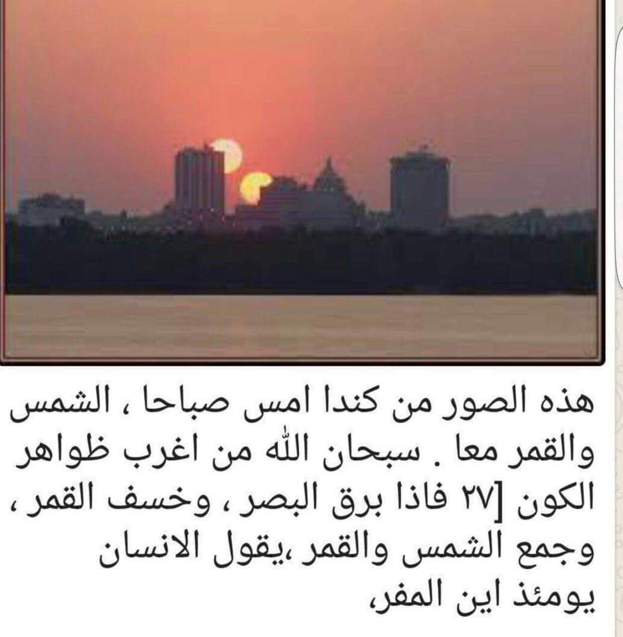 عبداللطيف بن عبدالله آل الشيخ A Twitter صوره من كندا امس صباحا والشمس والقمر معا فاذا برق البصر وخسف القمر وجمع الشمس والقمر يقول الانسان يومئذ اين المفر Https T Co Zntpn2mr7m