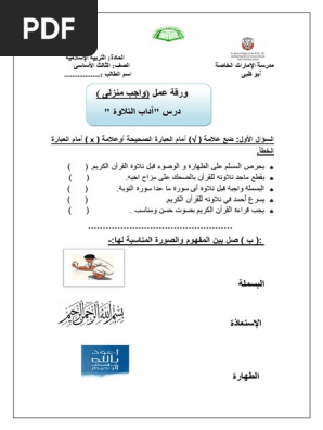 أوراق عمل رائعة لدرس آداب التلاوة للتربية الإسلامية الصف الثاني الفصل الأول ملتقى تعليم فلسطين