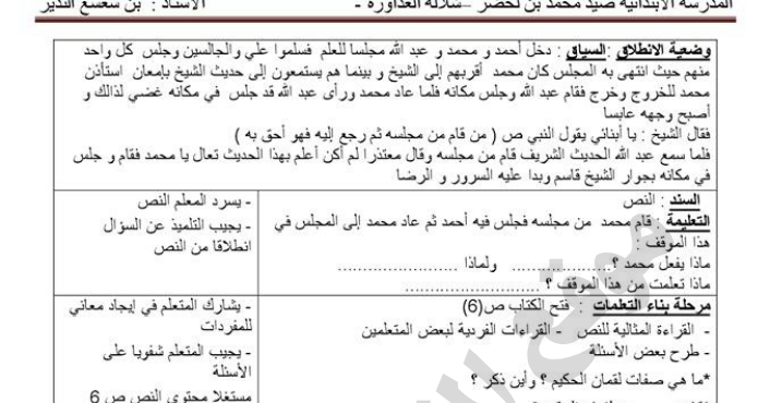 مذكرات السنة الخامسة ابتدائي في التربية الاسلامية المقطع الاول درس من وصايا لقمان لابنه Word