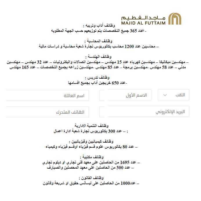 اعلان وظائف مؤسسة الفطيم وظائف للمحاسبة والهندسة والتدريس والتنمية الادارية والقانون وظائف مكتبية وسائقين التقديم على الانترنت