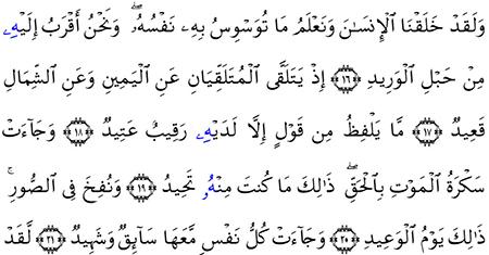 شرح وتفسير سورة ق Surah Qaf من الآية 16 إلى الآية 35 معاني الأسماء ومعاني الكلمات وتفسير القرآن الكريم